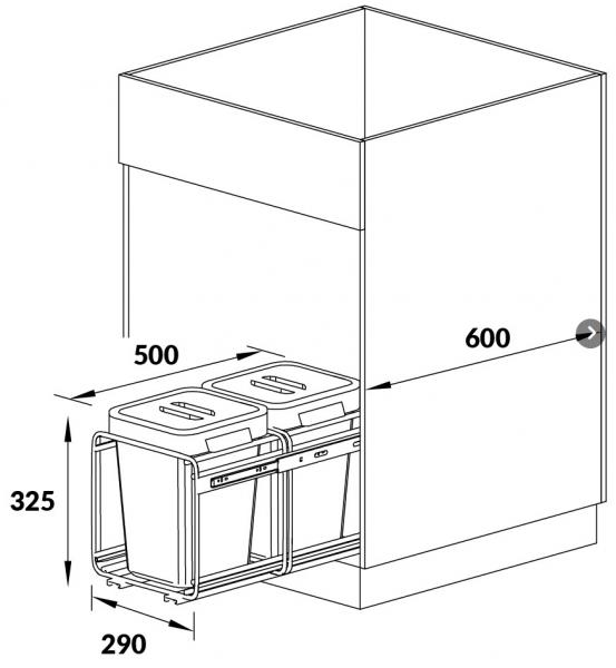 • Inkl. 2 funktionelle spande à 11 l med låg og ergonomisk greb (H x B x D: 325 x 290 x 500 mm)