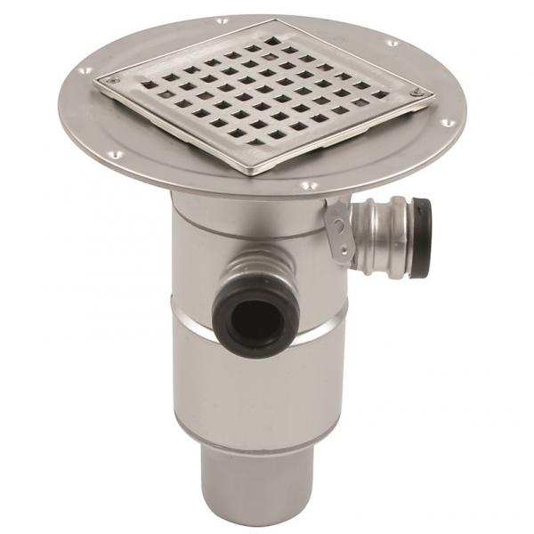 BLÜCHER Domestic-150 afløb for beton- og klinkegulve, med sideindløb og lodret Ø75mm udløb, samt membranflange