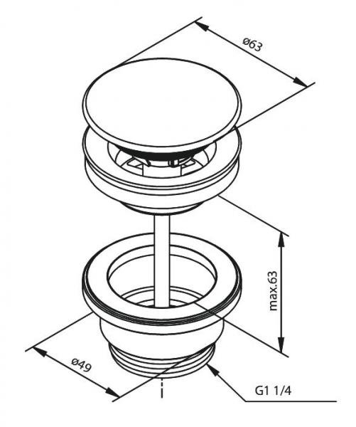 Damixa komplet push-open bundventil - Børstet messing Bundventilen har med sine 63mm en ekstra lang rækkevidde. Specielt brugbart til bowlehåndvaske. |