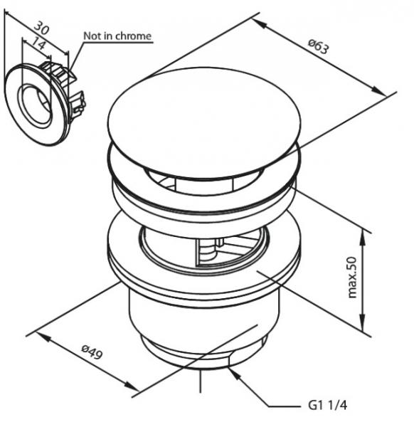 Damixa Pop-up bundventil. Komplet med klikfunktion.