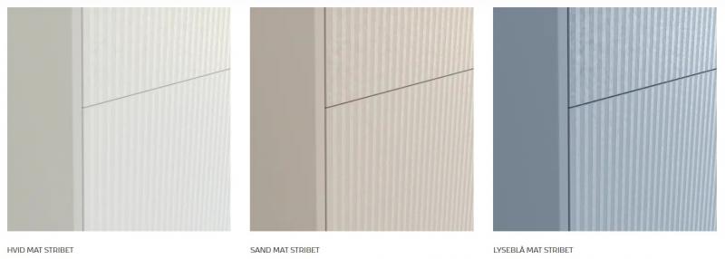 Badeværelsesmøblet har 2 skuffer med stribede, men ensfarvede fronter. Striberne består i forskelle i overfladestrukturen og er derfor en meget elengant og minimalistisk måde at bryde den ensfarvede flade på.