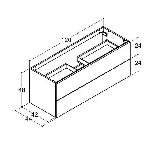 Dansani Luna vaskeskab i 120 cm bredde med to skuffer. Et rigtig godt valg til det store badeværelse, med stort behov for opbevaring. Vaskemøblets to skuffer er lige store, og har begge fuldt udtræk, selvindtræk og soft close. Med et neutralt badeværelsesmøbel som dette, har du mulighed for at indrette et særdeles personligt badeværelse med tilbehør mv. i de farver og i den stil du ønsker. Med dette vaskeskab fra Dansani får du et rummeligt, solidt møbel i tidløst design - lavet til at holde. Møblet leveres samlet inkl. justerbare beslag til montering på væg. Se Dansani møbelvaske til dette Luna møbel her. For relevante tilkøb, se relaterede varer. Specifikationer: