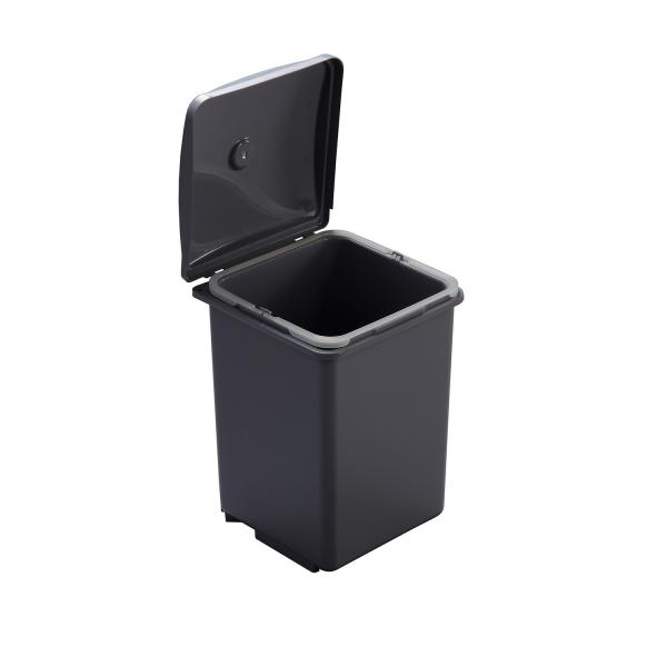 Eico Pepe 40 affaldsspand Affaldssystem med låg Enkel installation i skabsdøren. Udvendig spand i grå plast. Indvendig spand i rengøringsvenlig lys grå plast. Låget åbner automatisk. Passer i 30 cm skab 1x13 ltr. spand |