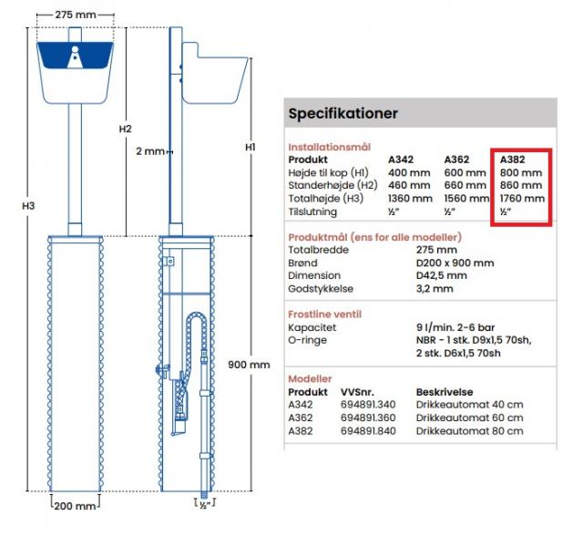 Frostfri drikkeautomat til køer og heste - 80 cm Vandet trækkes fra stald eller hus og ligger i 90 cm hele vejen ud til drikkeautomaten. Den leveres med en brønd på 90 cm, så er du sikret frostfrit vand hele vinteren uden du skal rører en finger.