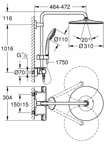 Gør det daglige brusebad til en luksuriøs oplevelse med Grohe Europhia 310 brusesystem med en dejligt stor hovedbruser. Med dette brusesystem får du hele pakken: En stor hovedbruser, en håndbruser, et termostatarmatur og de passende løsdele. Alle dele med Grohes avancerede teknologier, som er tilpasset dine behov og for at du kan få den bedste oplevelse.