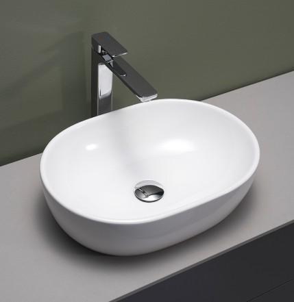 Hafa Grace 48 fritstående bowlevask - Uden overløb Oval fritstående håndvask i porcelæn uden overløb. Kombineres med højt blandingsbatteri, som monteres på bordpladen. Specifikationer: