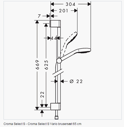 Brusersættet Croma Select S Vario forkæler med masser af detaljer, som gør brusebadet mere behageligt. Derfor har hansgrohe placeret stråleomskifteren på brusehovedet, hvor den er let at nå. Nemt med et tryk på en knap (Select). Ud over håndbruseren indeholder det komplette sæt en original Unica bruserstang og en bruserslange på 1,60 m. Glideren på bruserstangen (0,65 m) kan justeres trinløst i højden og dens hældning kan reguleres med 45°.