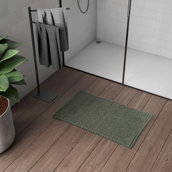 Hefe Knot bademåtte 50 x 50 cm - Grøn Hefe Knot bademåtte har en lækker flettet overflade, hvis struktur føles dejlig for fødderne, har en god sugeevne og er meget dekorativt. Bademåtten fås i to trendy farver, som passer perfekt ind på det skandinavisk indrettede badeværelse. OBS: Denne bademåtte er kvadratisk, ikke rektangulær som på billedet. Specifikationer: