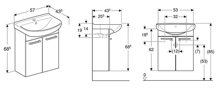 Ifö Cera møbelpakke - stor vask. Med plane låger LP 30 med sølveloxeret lige greb GR-SL og skabshylde. Ifö Cera håndvask, Ifö nr. 23220, VVS nr. 623062100 hvid uden armatur. |