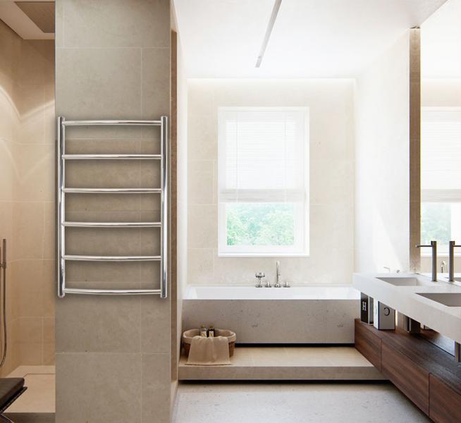 Kriss Sino håndklædetørrer - 53x80 cm - Poleret rustfri stål Den kendte model Sino har let buede, vandrette rør i poleret rustfrit stål. Det lave energiforbrug og det rustfrie stål gør Sino både miljøvenlig og uforgængelig. Tænd/sluk-knappen betjenes nemt, da den er placeret i bunden af venstre lodrette rør. Leveres med synligt kabel med stikprop. Specifikationer: