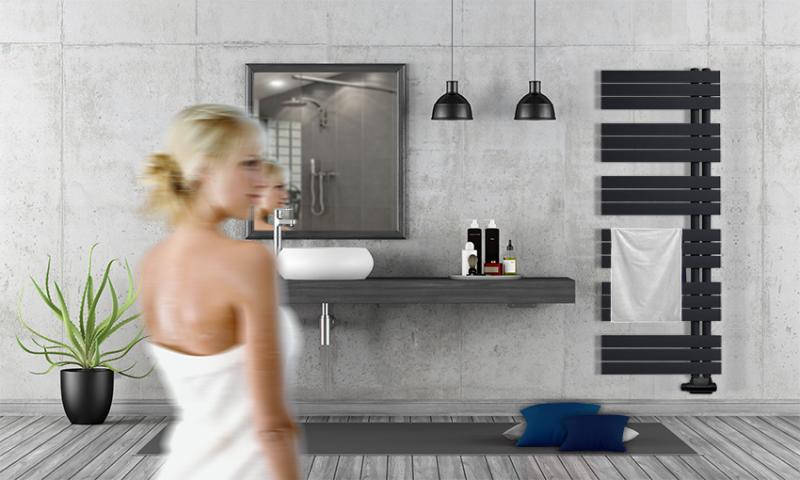 Kriss Stella håndklæderadiator - 1312x600 - Mat sort Håndklædetørrer med firkantede vandrette rør, hvor de runde lodrette sidder med 50mm centerafstend i den ene side. De vandrette rør er 50mmx10mm. De Lodrette rør er Ø38mm. Håndklædetørreren kan benyttes alle steder hvor der er central- og fjernvarmeanlæg eller mulighed for tilslutning til almindelig 230V strøm. Det er også muligt at benytte en kombination af varmeanlæg og el-tilslutning. Specifikationer:
