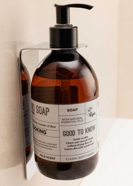 Holderen gør det muligt af få sæbeflasken væk fra håndvasken, da den er til ophængning på væggen.