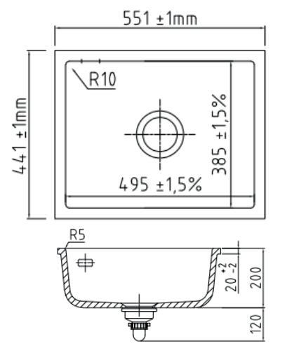 Lavabo Mera 50 U porcelænskøkkenvask - underlimning Mera 50 er til underlimning (kan også fås til planlimning). Vasken er et 100% naturprodukt bestående af ler og glasur og har et enkle og tidløst design. Materialet og produktionsmetoden gør at vasken både er antibakteriel, ridse - og syrefast. En meget slidstærk vask i enkelt design. Vasken leveres med standard bundventil. OBS: Min. 30 mm bordpladetykkelse ved montering med det medleverede montingssæt. Hvis vasken kun limes, kan bordpladen være tyndere. Specifikationer: