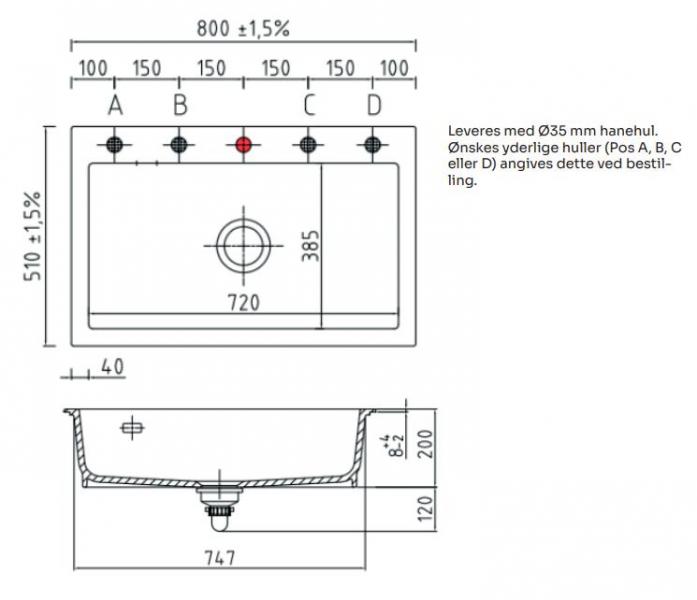 Lavabo Mera 80 køkkenvask - Krom afløb Mera 80 er en køkkenvask til nedfældning.