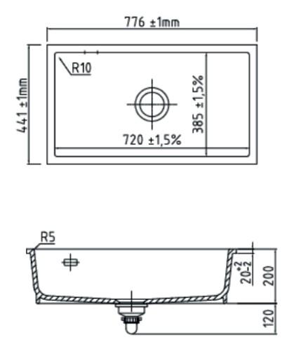 Vi anbefaler på grund af materialemæssige tolerancer på +/-1,5 % at lave udskæringen baseret på den leverede vask.