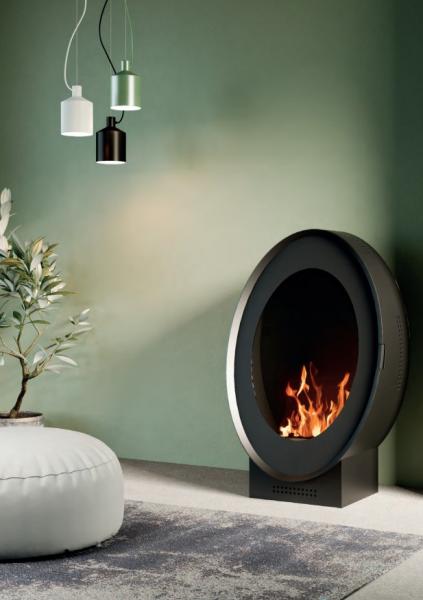 Osaka biopejs til gulv Osaka er en flot og moderne bio pejs, med lugtfri flamme og et ydre af stål. Der er medfølgende låge i sikkerhedsglas. Der medfølger redskab i rustfrit stål til at slukke ilden i biopejsen med.