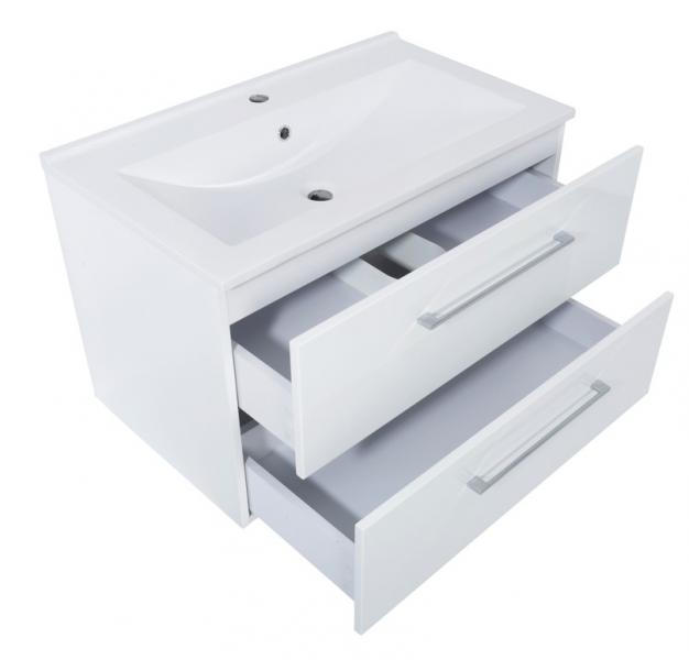 Nortiq Bakkedahl 80 møbelsæt - Hvid højglans Lækkert enkelt møbelsæt inkl vask og greb. Bakkedahl badmøbelserien er en klassisk designet badserie, som passer perfekt til stort set alle badeværelser. Bakkedahl serien er med 2 rummelige skuffer med flotte møbelgreb i krom, softclose på skuffer og fuldt udtræk for ekstra komfort. I serien findes flotte højskabe, tilhørende spejle med ramme samt rummelige badskabe med spejllåger – alle i matchende design & finish. Bakkedahl serien leveres færdigsamlet fra fabrikken med justerbare ophængningsbeslag, som gør det nemt, hurtigt og bekvemt at installere i netop dit badeværelse. Vask