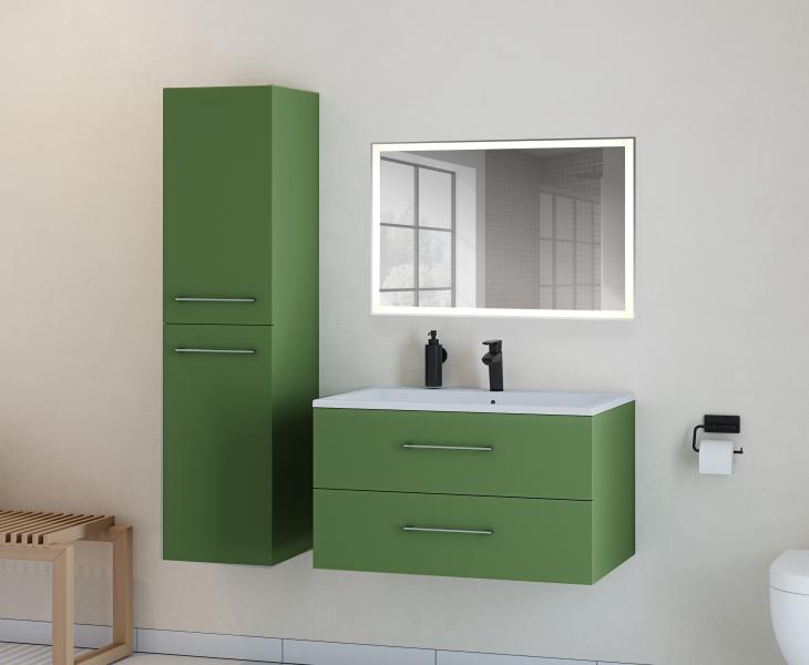 Nortiq Bakkedahl højskab - Mat grøn Flot og enkelt højskab fra Nortiq Bakkedahl. Har du behov for ekstra opbevaring eller har du en væghængt håndvask og dermed ikke opbevaring under, så er dette højskab helt oplagt til badeværelset. Højskabet er desuden et godt valg til det mindre badeværelse, hvor pladsen er trang, da det fylder i højden og ikke i bredden. Det rummelige Bakkedahl højskab leveres med 3 løse glashylder, så du i alt har 4 hylder og dermed masser af plads til opbevaring. Højskabet her leveres med umonterede greb i krom, men du har mulighed for at vælge greb i den farve og stil, du ønsker. Match grebene med resten af dit badeværelsestilbehør og du opnår øjeblikkelig sammenhæng i din indretning. Dette højskab er lavet til at kunne modstå både fugt og de temperaturskift der er på et badeværelse og vil derfor holde sig flot i årevis. Den flotte grønne farve kan være utroligt mange ting, alt efter hvordan du indretter omkring den. Den kan både være eksklusiv og luksuriøs, den kan være moderne og urban eller jordnær og ungdommelig – eller den kan være lige præcis dét, du ønsker den skal være! Specifikationer: