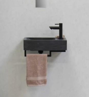 Sanibell Proline 40 håndvask m/håndklædeholder - Hanehul til venstre (modsat billede 2) Lille hvid håndvask med flot håndklædeholder i mat sort. En elegant og pladsbesparende løsning til gæstetoilettet eller det helt lille badeværelse. Håndvasken har hanehul til venstre og håndklædeholder til højre. Porcelænsvask i hvid