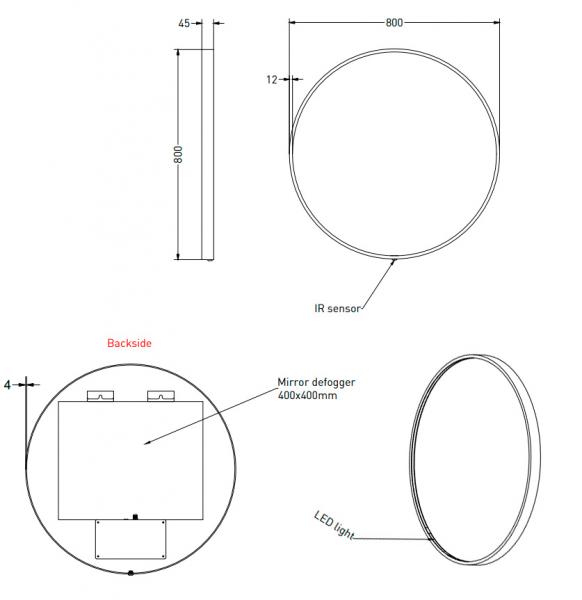 Sanibell Ink SP24 rundt spejl m/lys, varme og sensor Ø80 - Mat sort Rundt spejl med indbygget lys, smukt indrammet med slank ramme, som fås i 6 forskellige farver. Udover direkte LED-lys i rammen har dette spejl også indbygget varmefelt, hvilket betyder, at du kan nyde et dugfrit spejl, selv efter et langt og varmt bad. Spejlet husker din indstilling med den smarte memoryfunktion. Du undgår fingeraftryk på spejlet med den smarte sensorkontakt, som du nemt og enkelt bruger til at regulere lysstyrke og -farve med. Specifikationer:
