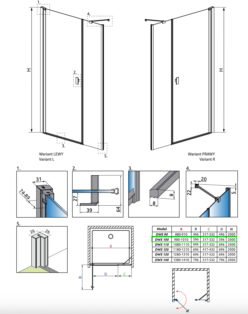 Strømberg Noma 45 svingdør m/sidepanel 1000mm - Højre - Børstet gunmetal Brusenichedør med fast sidepanel - begge med paneler og greb på døren i børstet gunmetal PVD. Specifikationer:
