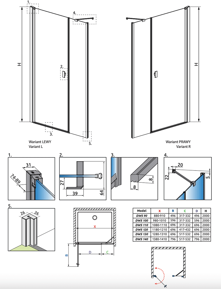 Strømberg Noma 45 svingdør m/sidepanel 1100mm - Højre - Mat sort