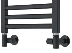 TVS vinkelløbende ventilsæt der er med manuel regulering og 1/2" muffe tilslutning. Passer til alle håndklædetørremodeller fra TVS med kombineret central-/fjernvarme og el-tilslutning (kombidrift).
