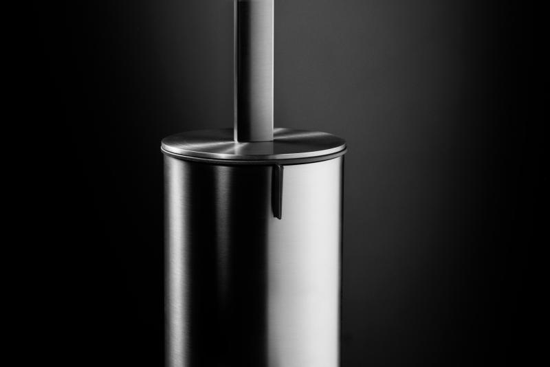 Unidrain ReFrame toiletbørste til gulv - Poleret stål Det har aldrig været mere hygiejnisk eller stilfuldt at have en toiletbørste. Under udviklingsprocessen er der tænkt meget på hygiejnen. Den indre plastikbeholder er udformet med en stænkkrave, der går ud over den ydre beholder og sikrer, at der ikke kommer bakterier ind imellem de to beholdere. Som en ekstra hygiejnisk løsning er den indre beholder forsynet med en ’tap’, så man nemt og uden at komme i kontakt med bakterier kan tømme beholderen. Børstehovedet er udformet så det opsamler mindst muligt vand og papir, og derved reducerer uønsket dryppen med toiletvand. Vælg mellem en væghængt model og en gulvmodel. Børstehovedet kan skiftes.