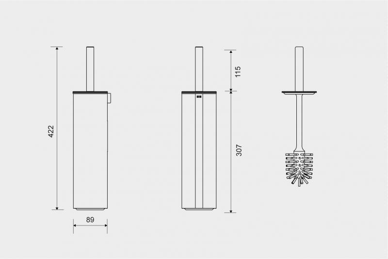 Unidrain ReFrame toiletbørste til gulv - Sort Det har aldrig været mere hygiejnisk eller stilfuldt at have en toiletbørste. Under udviklingsprocessen er der tænkt meget på hygiejnen. Den indre plastikbeholder er udformet med en stænkkrave, der går ud over den ydre beholder og sikrer, at der ikke kommer bakterier ind imellem de to beholdere. Som en ekstra hygiejnisk løsning er den indre beholder forsynet med en ’tap’, så man nemt og uden at komme i kontakt med bakterier kan tømme beholderen. Børstehovedet er udformet så det opsamler mindst muligt vand og papir, og derved reducerer uønsket dryppen med toiletvand. Vælg mellem en væghængt model og en gulvmodel. Børstehovedet kan skiftes.