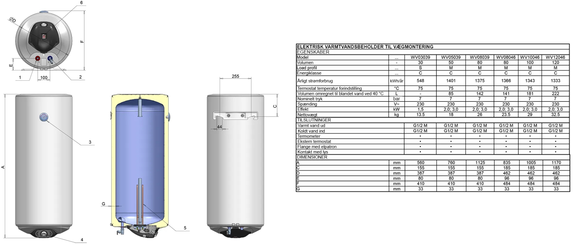 Eldom Varmtvandsbeholder 30 L - Væghængt