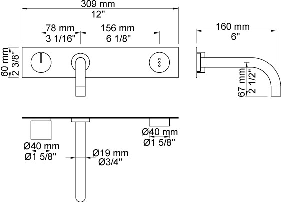 Vola Indbygningsblander til berøringsfri betjening Dækplade Krom 16 ½''RG